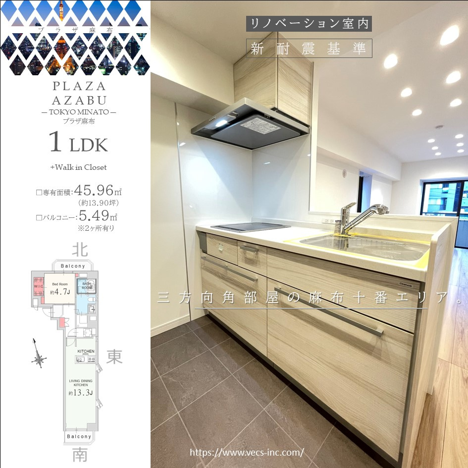 #vecs #ヴェックス #プラザ麻布 #マンション #麻布十番 #リノベーション #vecs物件紹介 #ヴェックス物件紹介 #南北線 #japan #tokyo #realestate #vecsproject #reform